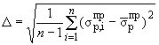 Вычисляют среднее арифметическое значение по пробе предела прочности σрпр, среднее квадратическое отклонение Δ и коэффициент вариации V: