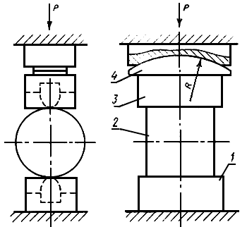 цилиндрический сегментный шарнир по черт.1 или любой другой конструкции применяют как обязательный при отсутствии на испытательной машине верхней подвесной сферической плиты и располагают между опорой испытательной машины и плитой (клином).