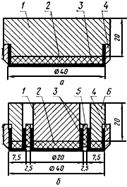 5 - фторопластовое кольцо; 6 - эбонитовая опора электрода охранного кольца