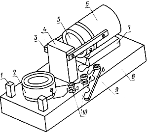 5 - потенциальный электрод; 6 - груз; 7 - опорная стойка; 8 - станина; 9 - ключ, 10 - клеммы.