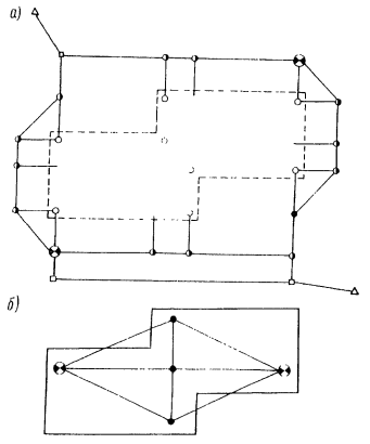 б) строительной сетки, как правило, с размерами сторон 50, 100, 200 м и других видов геодезических сетей.